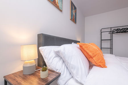This spacious and welcoming 4-bedroom home in Huddersfield is ideal for families, contractors and longer stays, offering two king rooms (one en-suite), a double, a single and a sofa bed for up to 9 guests. Enjoy a bright living area with a 60” Smart TV, PS4, games and a football table, along with a fully equipped kitchen, dining area, conservatory and a large private garden. Each bedroom includes a workspace, complemented by fast 500 mbps Wi-Fi, 2.5 bathrooms, laundry facilities and driveway parking for two cars. With full private access, secure self check-in, professional cleaning, and pet-friendly options on request, this peaceful home just 10 minutes from Huddersfield Centre and the hospital is perfect for comfortable extended stays or relocations.